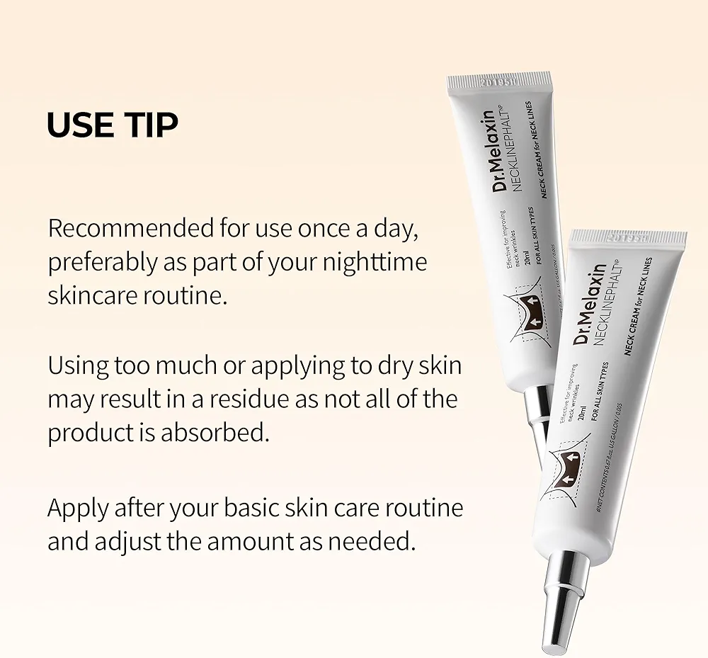 این محصول آزمایشهای بالینی برای لیفتینگ چروکهای گردن را با موفقیت پشت سر گذاشته و بخشی از خط تولید پیشرفته Dr.Melaxin است که بر مشکلات منحصربهفرد پوست گردن (مانند نازکی و حساسیت بیشتر نسبت به صورت) تمرکز دارد.