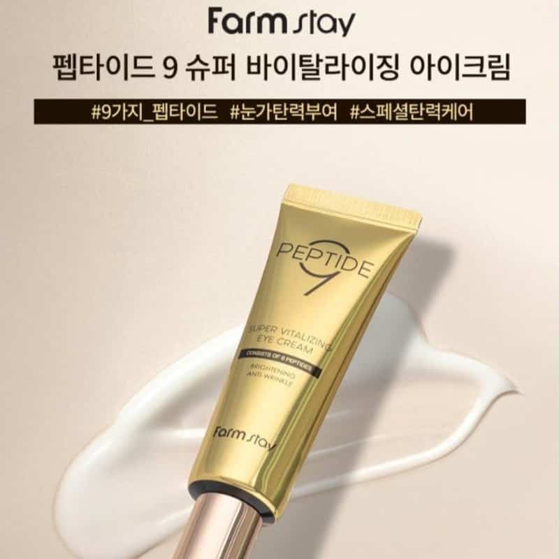 کرم دور چشم Farmstay Peptide 9 با فرمولاسیون حاوی ۹ پپتاید، تیرگی و چینوچروک را کاهش داده و پوست اطراف چشم را روشن، مرطوب و جوان میکند.