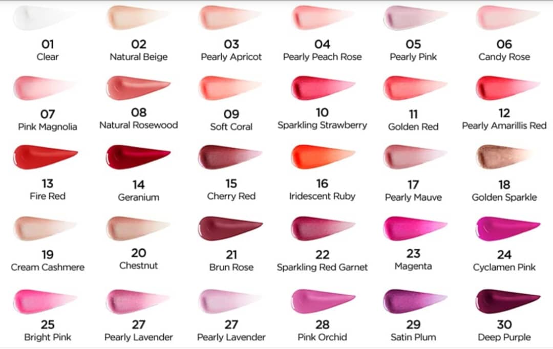 تنوع رنگ: بیش از ۳۰ رنگ مختلف (شفاف، پررنگ، مرواریدی، براق و ...). رنگهای محبوب مثل شماره ۱۷ (Pearly Mauve)، ۲۱ و ۳۵ خیلی پرطرفدار هستند.