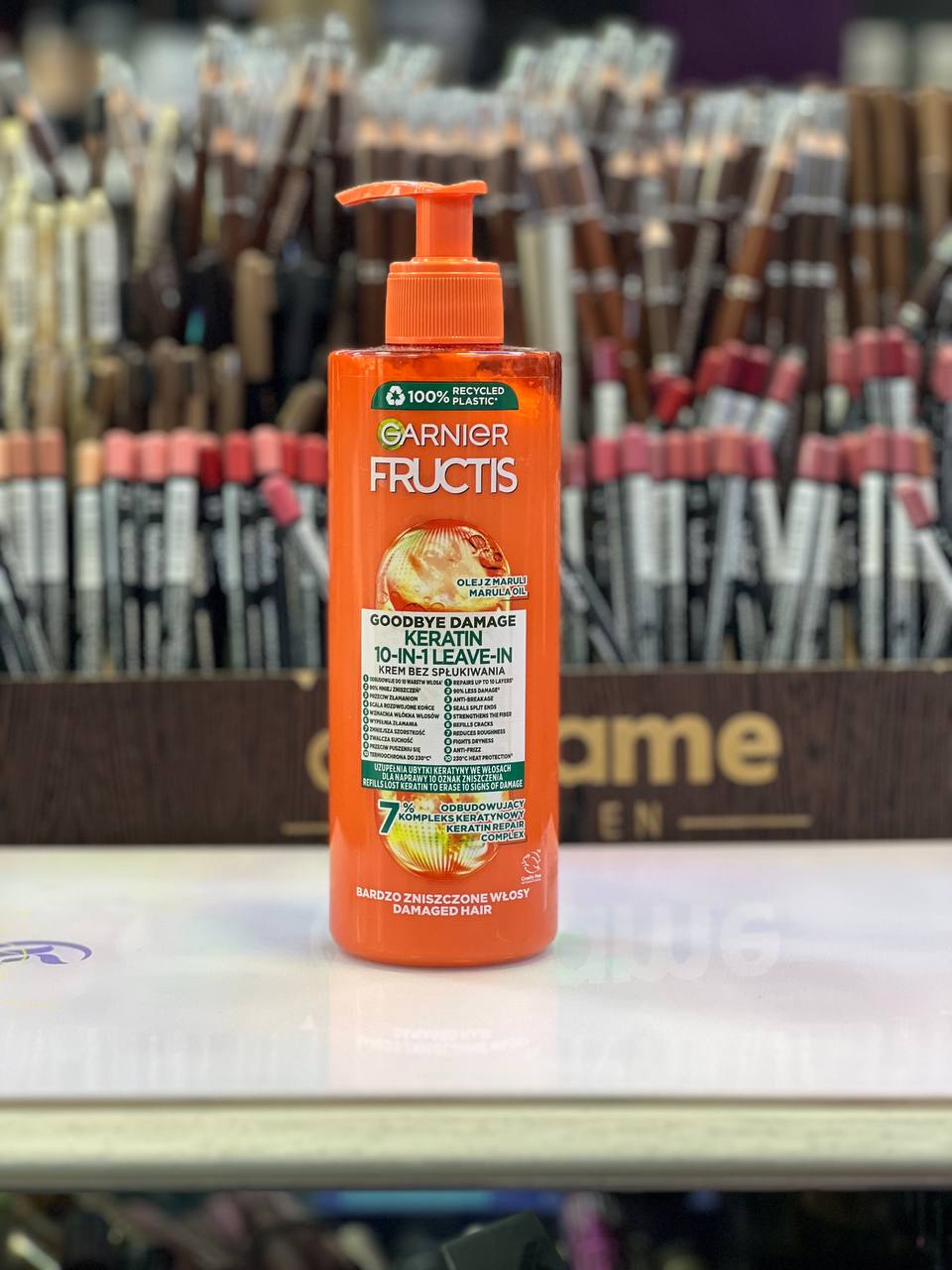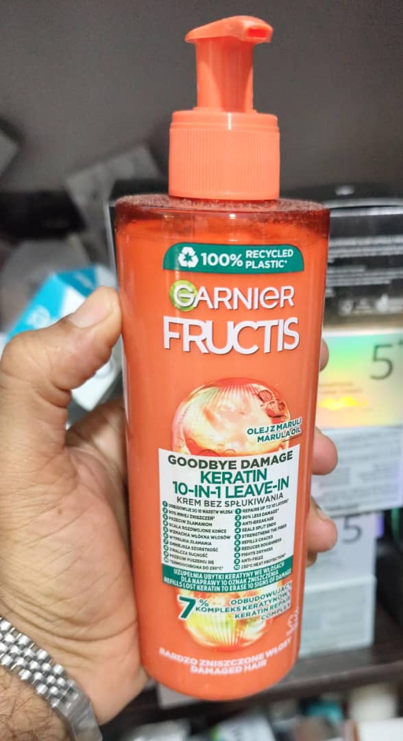 کرم مو 10 کاره گارنیر فروکتیس اصل فرانسه GARNIER Fructis Goodbye Damage کرم مو گارنیر نارنجی یکی از محبوب ترین انواع کرم موهای تولید شده توسط برند گارنیر (فرانسه) است. این محصول یک کرم موی ترمیم کننده ۱۰ کاره است که استفاده از آن برای موهای آسیب دیده و افرادی که زیاد از سشوار و اتو مو استفاده می کنند، توصیه می شود