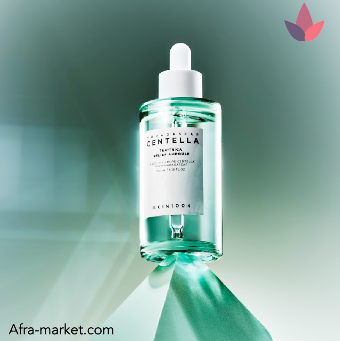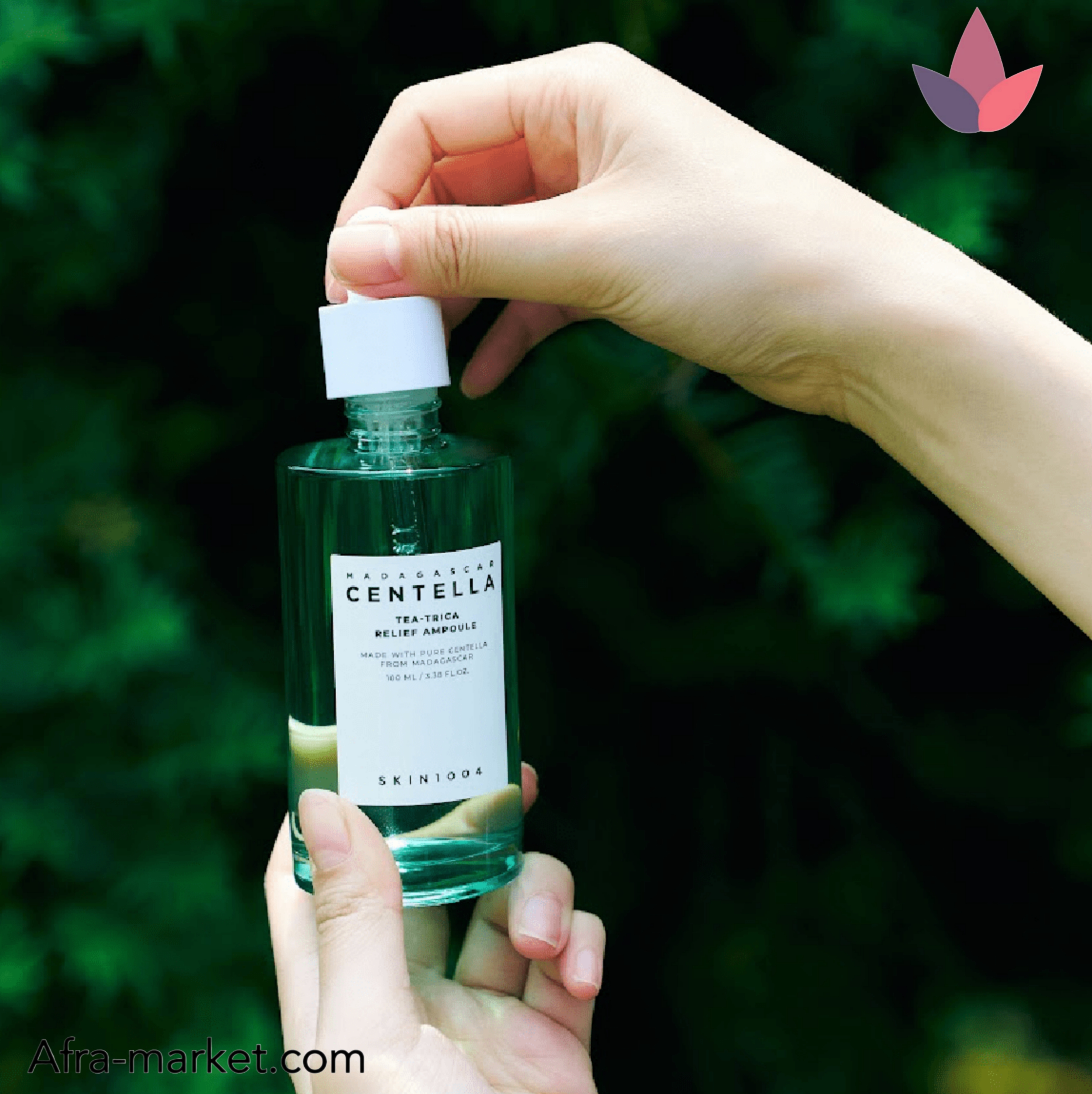 سرم Tea-Trica Relief Ampoule سنتلا مدگاسکار SKIN1004 با ترکیب سنتلا، چای سبز و درخت چای، پوستهای حساس و ملتهب را تسکین داده و به کنترل چربی و ترمیم بافت پوست کمک میکند.